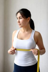 • Apimtis per plačiausią vietą: matuokite laisvai per patį krūtinės vidurį (geriausia – užsidėjus ploną, neformuojančią liemenėlę).
