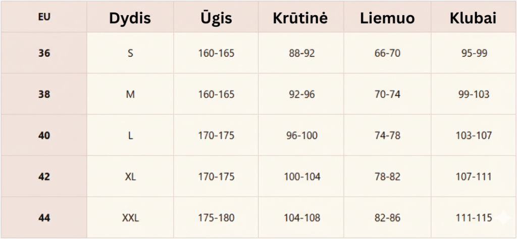 | Dydis | XS, S, M, L, XL, 2XL, 3XL, 4XL |